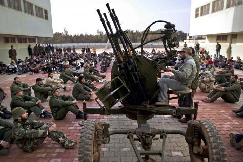 Σε ερώτηση για το ενδεχόμενο στρατιωτικής βοήθειας ή εξοπλισμού των αντικαθεστωτικών δυνάμεων ο γάλλος υπουργός δήλωσε ότι "μια τέτοια βοήθεια δεν είναι στην ημερήσια διάταξη γιατί δε συνάδει με την απόφαση 1973".