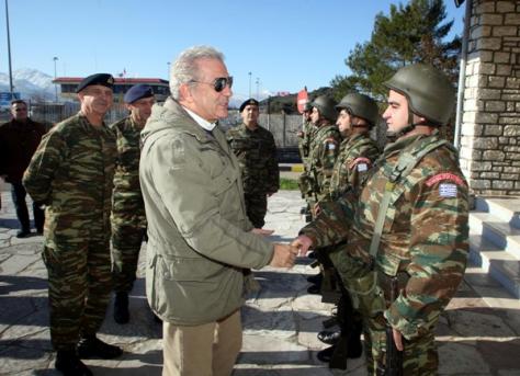 Με …χακί μπουφάν να “δένει” με το τόπο και το κλίμα ο ΥΕΘΑ Δημήτρης Αβραμόπουλος, συνοδευόμενος από τον Αρχηγό ΓΕΣ Αντιστράτηγο κ. Κωνσταντίνο Ζιαζιά και τον Διοικητή 1ης Στρατιάς Αντιστράτηγο κ. Κωνσταντίνο Γκίνη, επισκέφτηκε τα Φυλάκια Μολυβδοσκέπαστου και Κακαβιάς.
