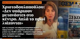 _________Έτσι βλέπει τα πράγματα η καθ' ύλην αρμοδία Υπουργός κα Χριστοδουλοπούλου! Αυτό και μόνον το γεγονός όχι μόνο μας αναγκάζει να «βγούμε απ' τα ρούχα μας», αλλά καί να εμφανισθούμε σαν να αναιρούμε τις ήδη διατυπωμένες σκέψεις μας, ότι δηλ. η αποστολή των μυριάδων μεταναστών, Μουσουλμάνων στο θρήσκευμα, στη Χώρα μας σκοπόν έχει να αλλοιώσει τον χαρακτήρα της Πατρίδος μας. Έχουμε εκτεθή δημοσίως, ισχυριζόμενος, ότι έπειτα από δύο-τρείς δεκαετίες οι Ισλαμιστές-μετανάστες θα είναι τά αφεντικά στον τόπο μας, εμείς δε «ξένοι» στην Πατρίδα μας. Οι Μουσουλμάνοι τότε θα είναι οι Νοικοκυραίοι και τα παιδιά σας ή τα εγγόνια σας οι υπηρέτες! Εκείνοι θα είναι οι Εργοδότες και τα παιδιά σας οι εργάτες! Επίσης οι πόλεις και τα χωριά θα έχουν γεμίσει με Μιναρέδες και Τζαμιά! Όλα αυτά ισχύουν! Η αθρόα εισροή Μουσουλμάνων Μεταναστών αποτελεί ΜΕΓΑΛΟ ΚΙΝΔΥΝΟ για την Ελλάδα μας. Η Ορθόδοξη Χριστιανική Ελλάδα μας, δεν κινδυνεύει απλώς! Χάνεται! Λίγο-λίγο εξαφανίζεται! Έτσι θέλει η globalization,δηλ. η παγκοσμιοποίηση! Προχθές ακόμη Μουσουλμάνοι ναυαγοί, ευρισκόμενοι στο πλοίο που τους διέσωσε και τους μετέφερε σε λιμάνι της Ιταλίας, έρριξαν στη θάλασσα ΔΕΚΑ ΟΚΤΩ (18) Ορθοδόξους Χριστιανούς συνεπιβάτες πρόσφυγες, που ήσαν στο ίδιο πλοιάριο! Τους ξεκαθάρισαν! Τί έχουν να δούν τα μάτια μας ακόμη!