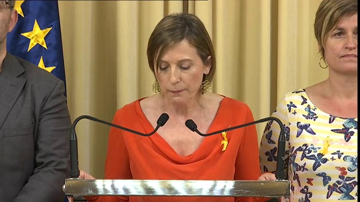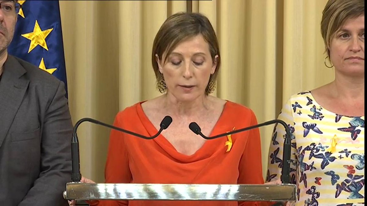 «Αυτό το Κοινοβούλιο συνεχίζει να αντιπροσωπεύει τους Καταλανούς», σημείωσε. «Δεσμευόμαστε για την υπεράσπιση της Δημοκρατίας, της εμπιστοσύνης και της Δημοκρατίας».