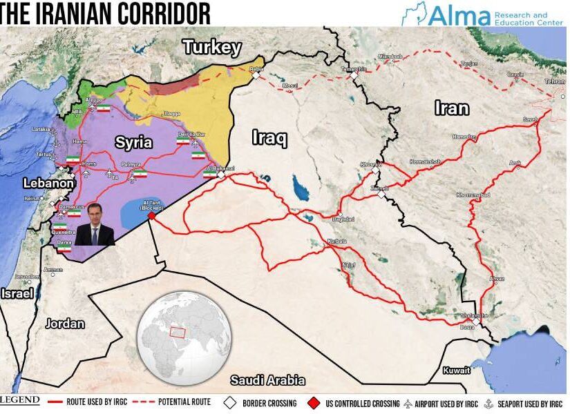 Κρίνεται σκόπιμο να αναφερθεί ότι το Ιράν διαθέτει τρεις δυνητικούς χερσαίους διαδρόμους προς τη Μεσόγειο Θάλασσα. Αυτή τη στιγμή είναι ενεργός ο κεντρικός δρόμος στο συνοριακό πέρασμα Al Qaim – Al Bukamal, τον οποίο η Τεχεράνη χρησιμοποιεί σφόδρα για να μετακινεί φίλιες παραστρατιωτικές ομάδες κι όπλα τόσο στη Συρία, όσο και στον Λίβανο. Ο βόρειος κι ο νότιος διάδρομος είναι αμφότεροι προσώρας κλειστοί, καθότι τον, μεν, πρώτο έχουν σε γενικές γραμμές κλείσει – οι υποστηριζόμενοι από την Ουάσιγκτον –Κούρδοι της Συρίας και τον, δε, δεύτερο έχουν φράξει εντελώς οι ΗΠΑ με τη στρατιωτική βάση που διατηρούν στην περιοχή Αλ Τανφ, την οποία σημειωτέον ο Ντόναλντ Τραμπ στην πρώτη του προεδρική θητεία ήθελε αρχικά να εκκενώσει, αλλά τελικά επείσθη να μην το κάνει.