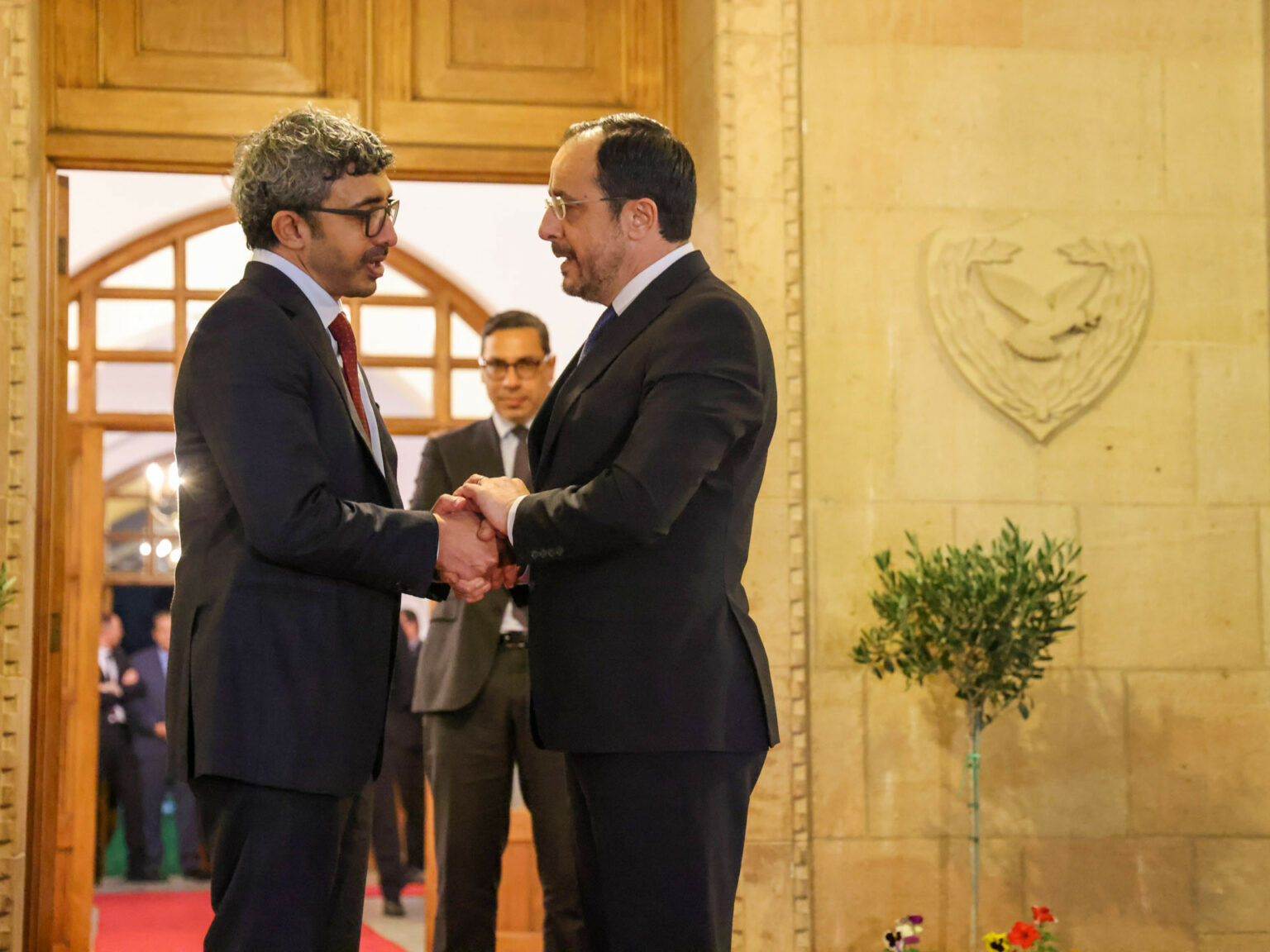 Ενδιαφέρον πάντως είναι το γεγονός ότι μετά τον Πρόεδρο Χέρτζογκ στο Προεδρικό Μέγαρο έφτασε ο αναπληρωτής πρωθυπουργός και υπουργός Εξωτερικών των Ηνωμένων Αραβικών Εμιράτων Σεΐχη Αμπντουλάχ Μπιν Ζαγέντ αλ Ναχαγιάν, η επίσκεψη του οποίου είχε κρατηθεί μυστική.
