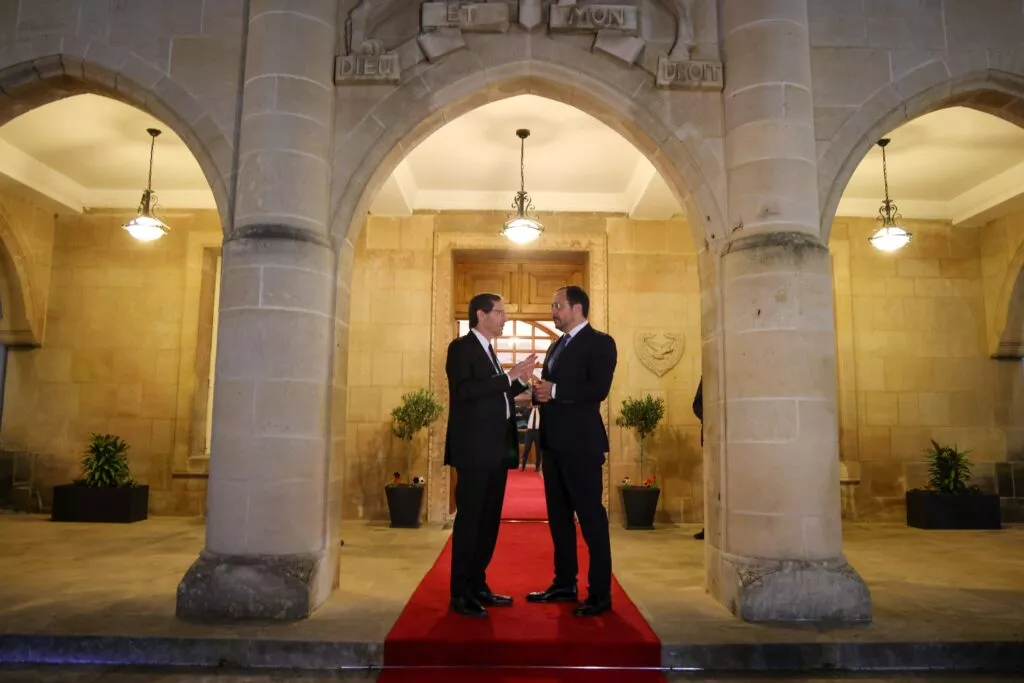 Σύμφωνα με γραπτή δήλωση του Κυβερνητικού Εκπροσώπου, Κωνσταντίνου Λετυμπιώτη, οι περιφερειακές και διεθνείς εξελίξεις απασχόλησαν τη συνάντηση του Προέδρου Χριστοδουλίδη με τον Πρόεδρο του Ισραήλ. «Ο Πρόεδρος Χριστοδουλίδης και ο Πρόεδρος Χέρτσογκ αντάλλαξαν απόψεις για τις τρέχουσες περιφερειακές και διεθνείς εξελίξεις», ανέφερε ο κ. Λετυμπιώτης, σημειώνοντας ότι η συζήτηση επικεντρώθηκε στη διαμόρφωση της κατάστασης στη Συρία και στις πιθανές επιπτώσεις της για την Ανατολική Μεσόγειο, «υπογραμμίζοντας παράλληλα τη σταθεροποιητική σημασία της Κύπρου ως γέφυρας μεταξύ της περιοχής και της Ευρωπαϊκής Ένωσης».