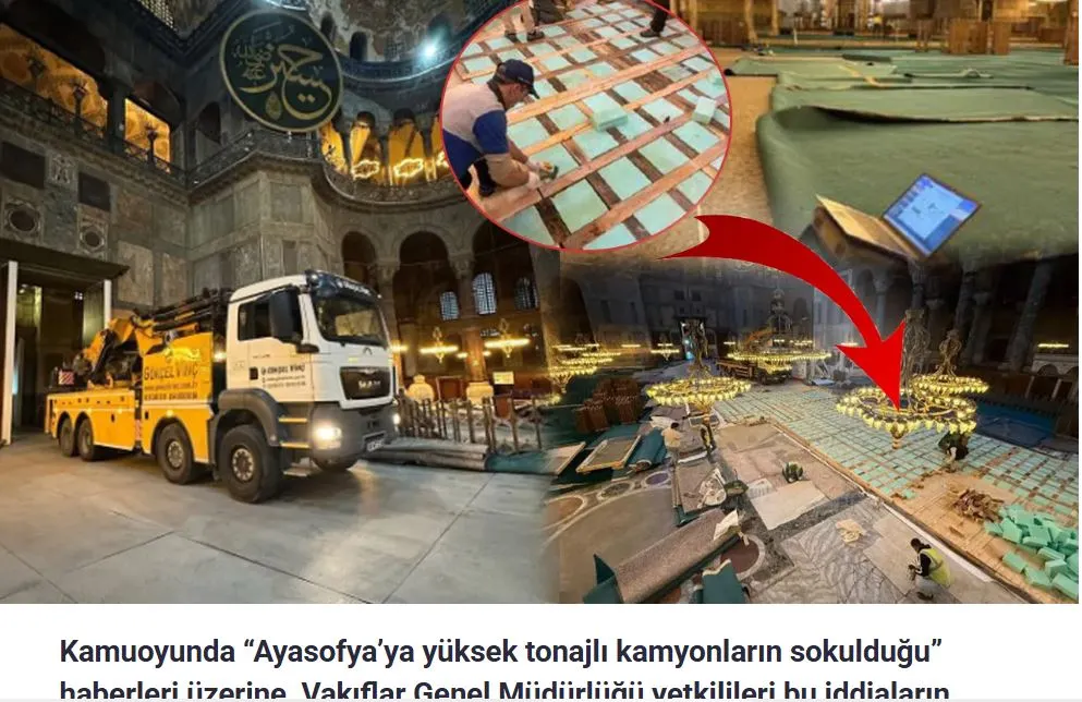 Μετά από δημόσιες αναφορές ότι «φορτηγά μεγάλου όγκου εισέρχονταν στην Αγία Σοφία», αξιωματούχοι της Γενικής Διεύθυνσης Βακουφίων εξέδωσαν δήλωση δηλώνοντας ότι αυτοί οι ισχυρισμοί διαστρεβλώνουν την αλήθεια.